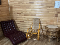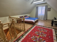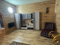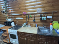 На первом этаже расположена кухня с обеденной зоной и гостинная. Так же на первом этаже расположен санузел в котором установлены душевая кабина, водонагреватель и раковина. На втором этаже спальня.