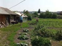 Участок 17,3 сотки, на участке: баня из круглого бревна, гараж на машиноместо шлаколитой с ямой, 2 теплых сарая из круглого бревна, колодец бетонный, каркас теплицы (стекло стоит внутри), плодоносящие насаждения (яблони, вишня, малина, красная смородина, черная смородина, черноплодная рябина, красная черемуха, ирга, виноград) многолетние цветы