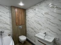 Санузел совмещенный: пол и стены - керамогранит, потолок-натяжной, установлен водонагреватель, все трубы и сантехника новые!