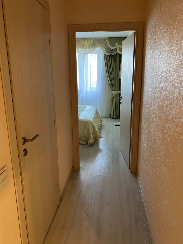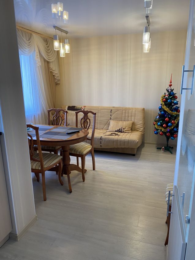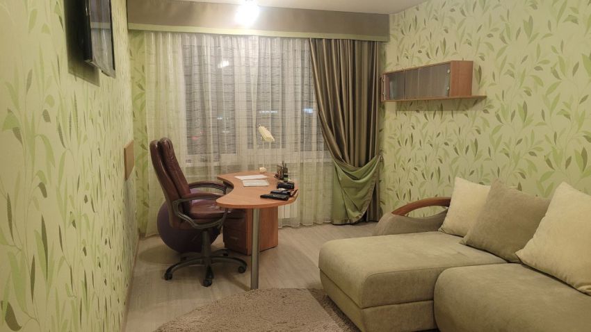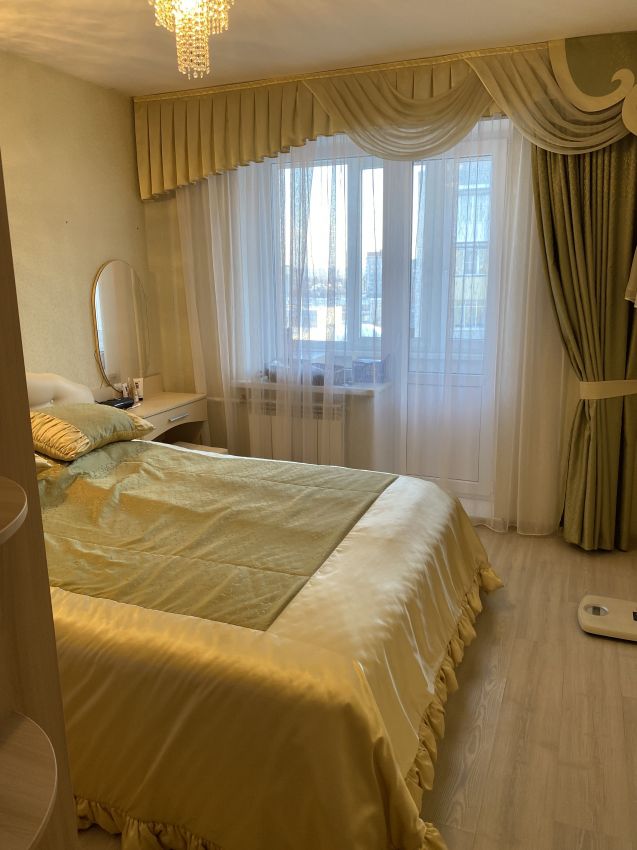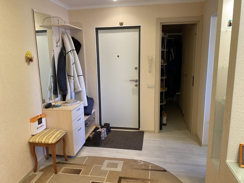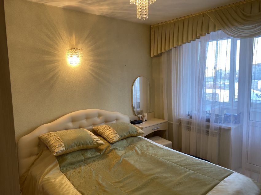 В квартире выполнена комфортная перепланировка - кухня объединена с прилегающей комнатой; изолированный санузел с увеличенной площадью за счет коридора. Имеется вместительная кладовка и застекленная лоджия - 3 метра.