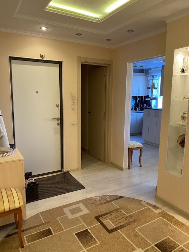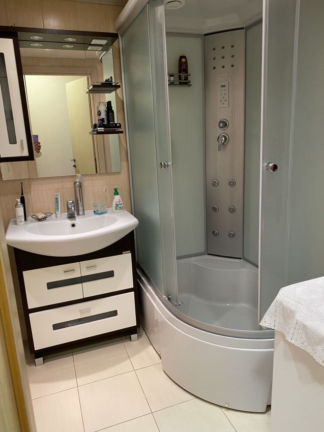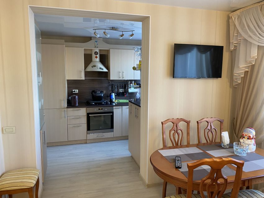 В квартире выполнен качественный капитальный ремонт: произведена замена электропроводки; стены выровнены и поклеены обои, в комнатах потолки натяжные, в прихожей - двухуровневые; полы залиты бетонной стяжкой, покрыты высокопрочным ламинатом; новые радиаторы отопления; установлены пластиковые окна (ПВХ), качественные межкомнатные двери (шпонированные), входная сейф-дверь. В санузле стены облицованы кафельной плиткой, установлена душевая кабина, приборы учета. В подарок покупателю остается вся мебель и бытовая техника!